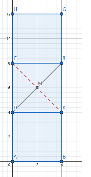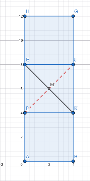 Her üç dikdörtgenin uzunluğu ve yüksekliği eşit. Iki yatay dikdörtgen arasındaki alan (uzunluk ve yükseklik) tam üçüncü dikdörtgenin sığacağı kadardır. Üçüncü dikdörtgeni o alana yerleştirdik, diyagonallarını kesiştirdik Senin verdiğin şekli elde etmek için 3. dikdörtgeni, M merkezi etrafında, diyagonallar arasındaki küçük açı kadar (senin verdiğin verilerle 36,87°) sola döndürmemiz gerekir. Peki dikdörtgenlerin uzunluğu ve yüksekliği eşit olsaydı yani dikdörtgenler kare olsaydı... Mesela şekildeki gibi 4x4 cm'lik 3 kare Üçüncü kareyi aralığa yerleştirdik, diyagonallarını kesiştirdik Senin verdiğin şekli elde etmek için 3. kareyi, M merkezi etrafında, diyagonallar arasındaki küçük açı kadar (yani 90°) sola döndürmemiz gerekir. Senin verdiğin şekli elde ettik ama... Aması var işte! 🙃 Senin aradığın üçgenler çizgi haline geldi ve tabi alanları sıfır oldu. Nedeni ise, diyagonallar arasındaki açı 90 derecedir. Kareyi 90 derece dönderdiğimizde önceki ve sonraki durum arasında görünüş olarak bir fark yoktur. Her iki durum aynıdır. Dikdörtgeni ve kareyi dönderdiğimiz anlaşılsın diye diyagonalları değişik reklerle çizmiştim. ... Hesabını diğer forumdaşlar yapar sanırım. Be sadece sonucu vereyim. L: Uzunluk H: Yükseklik A: Alan (iki üçgenin alanları toplamı) A = (L² - H²) * [H / (2 * L)] Formülden de hemen görülüyor: Eğer L = H ise yani dikdörtgenler kare ise, aranılan alan sıfırdır. Sevgiler