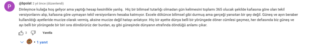 Aşağıdaki videoda iddia edilen sözde tutarsız mucizeye, delile cevap. (Ekran alıntısı olarak bir yorum aldım.) Cevap olan, çürüten yorum şu: